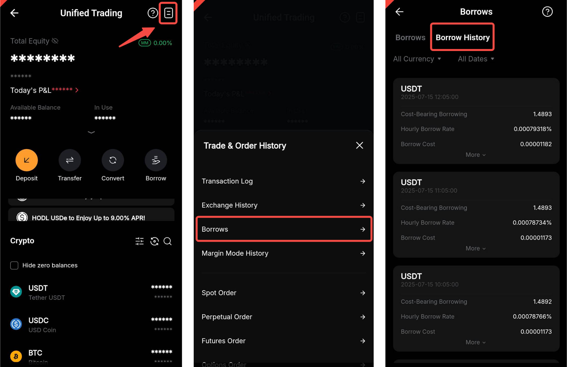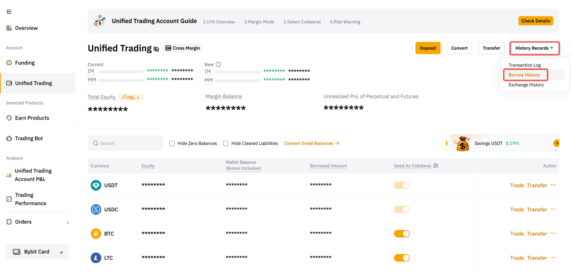 You can check your Borrow History from the Unified Trading Account asset page.