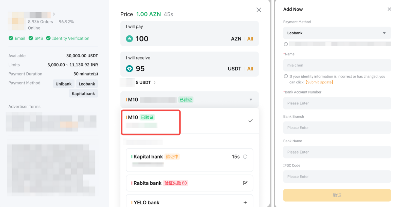 5. For more information about the bank account verification requirements, please refer to FAQ — P2P Trading for Azerbaijani Users and AZN Currency.