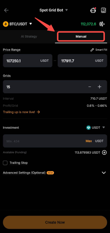 Step 3:You have two (2) options for creating Spot Grid Bots.