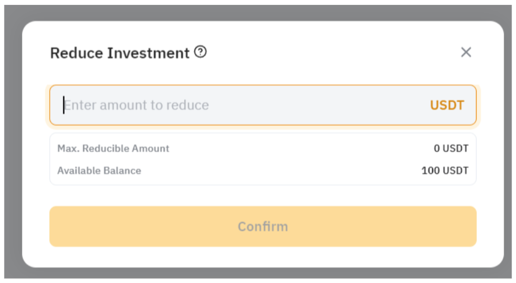 — The maximum reducible amount will be displayed in the Reduce Investment window.
