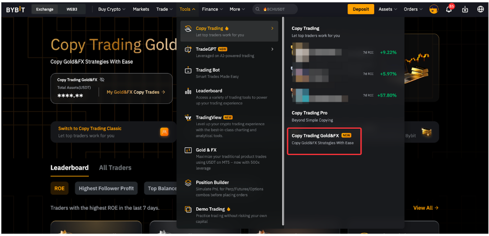 Step 1: Please click on Tools → Copy Trading → Copy Trading TradFi in the navigation bar to enter the Copy Trading TradFi page.