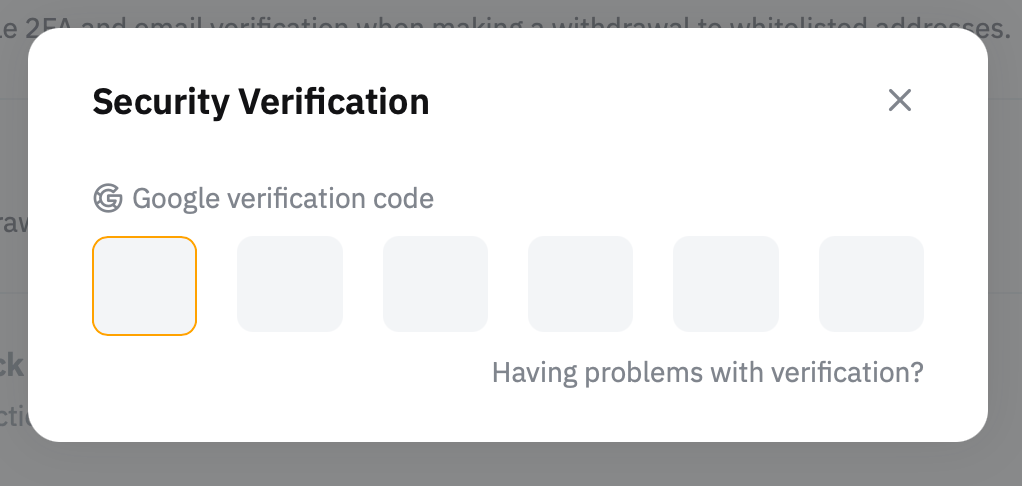 — Both the email verification code and 2FA verification code will remain mandatory for all unverified withdrawal wallet addresses. These will also be requested for verified wallet addresses when the Withdrawal Address Whitelist function is deactivated.