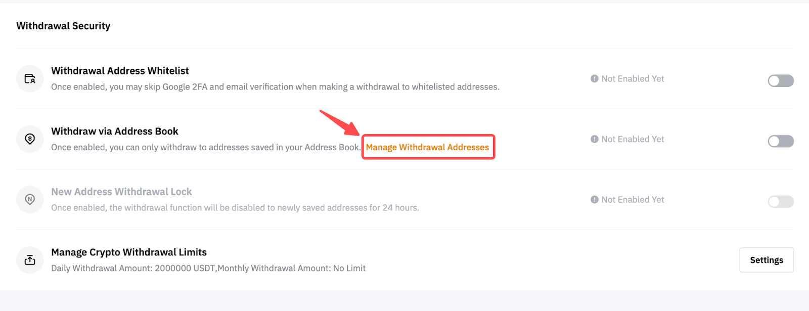 4. Manage Crypto Withdrawal Limits