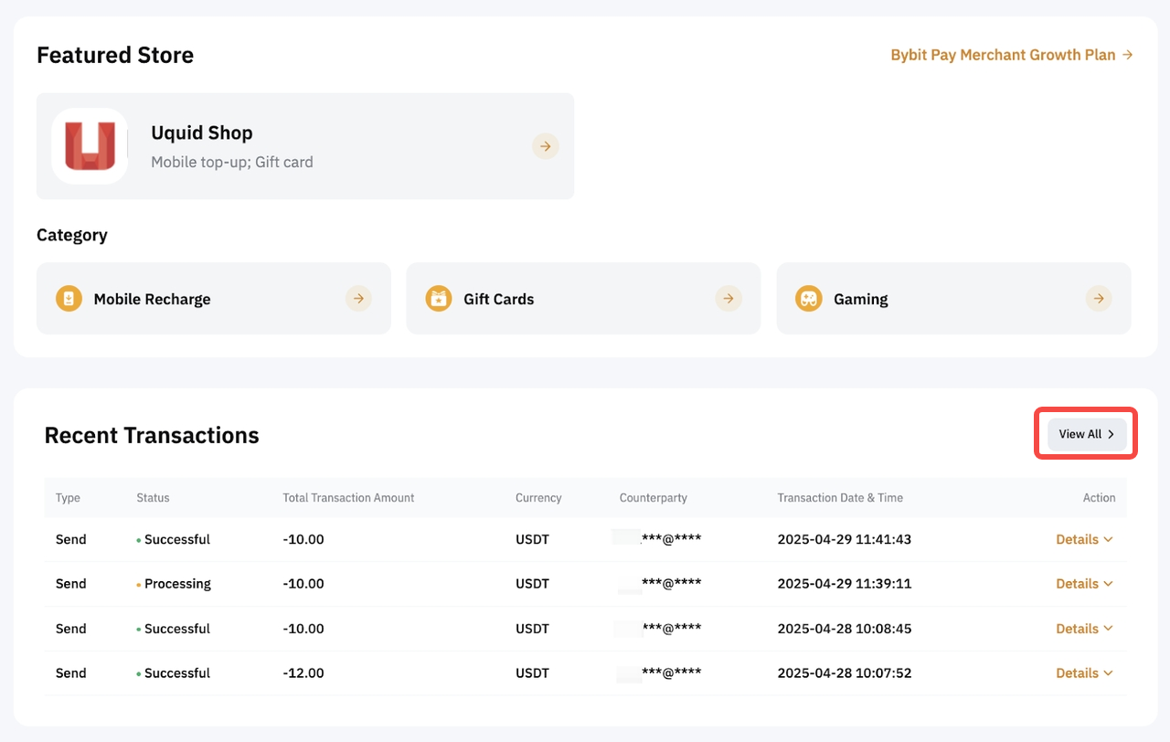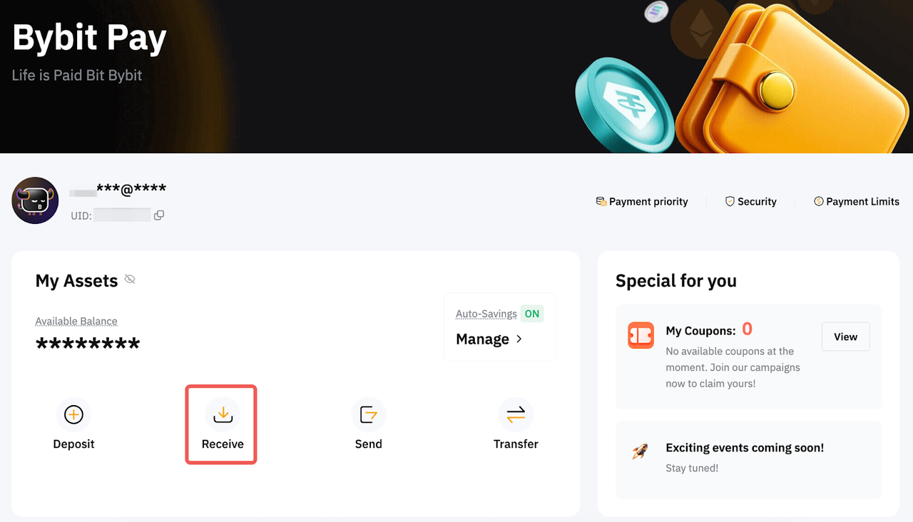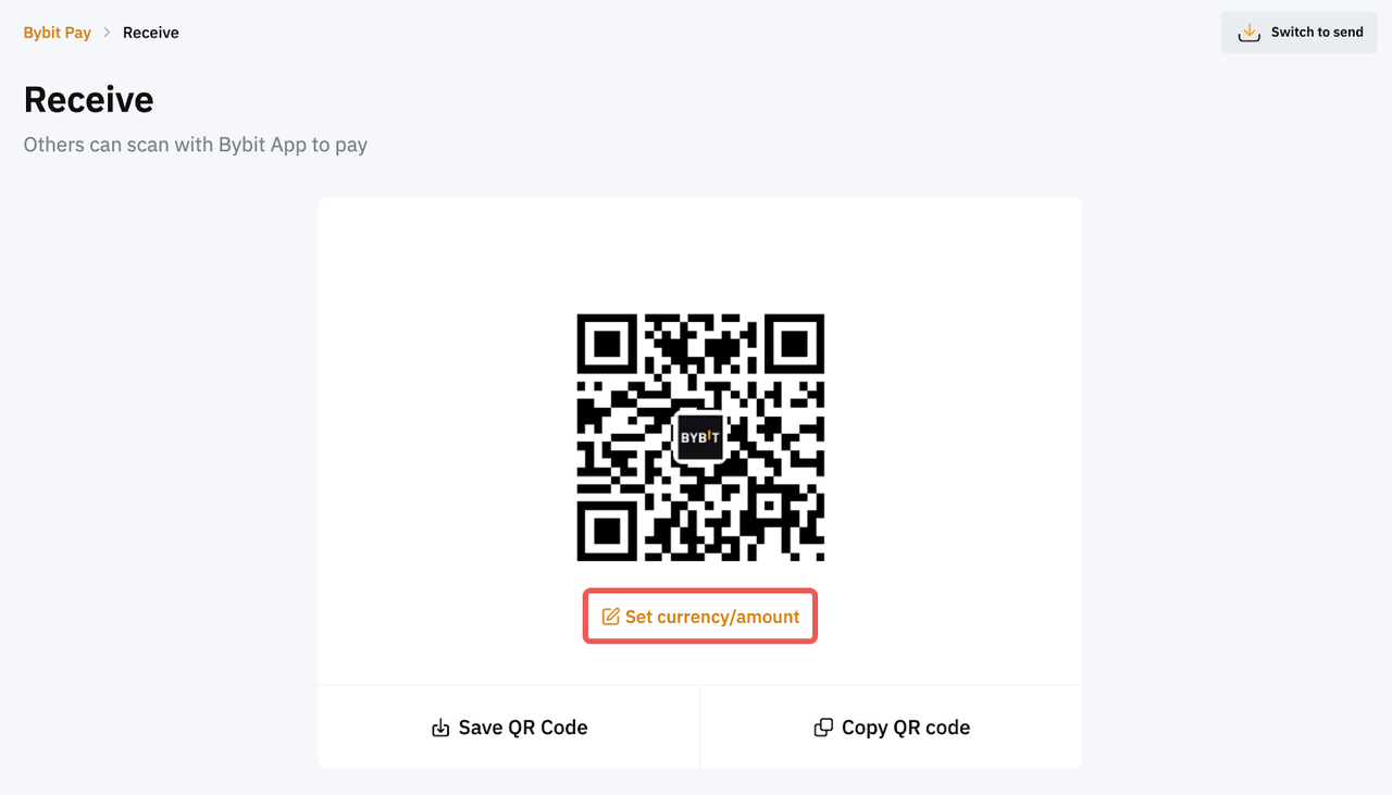 Bybit Pay enables you to conduct transactions with other Bybit Pay users and merchants. Two types of receiving methods are now supported: via the Bybit QR Pay using the app, and internal transfer using the app and website.