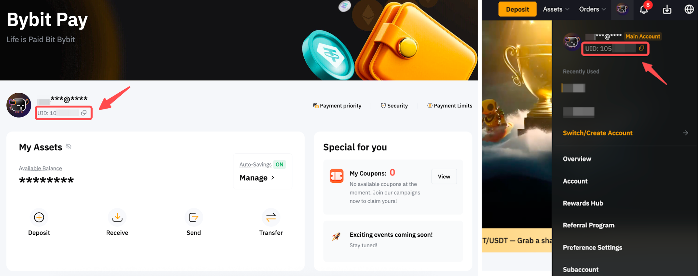 You can locate your Bybit UID on the profile page or Bybit Pay page.