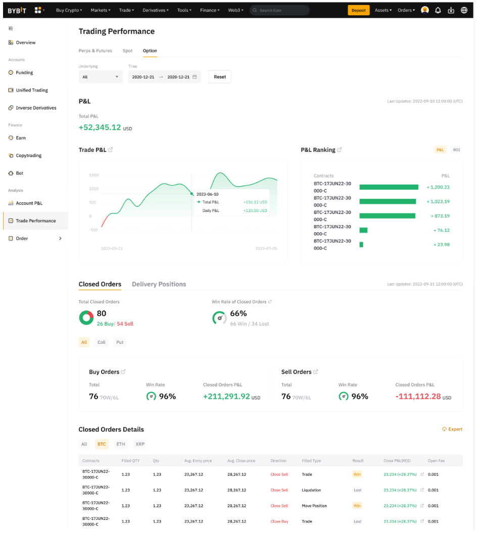 Currently, the trading performance data for Options is only accessible to Unified Trading Account users, whose accounts are viewable in Isolated Margin, Cross Margin, and Portfolio Margin modes.